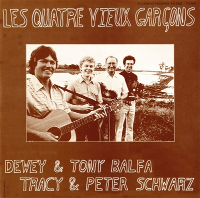 Les Quatre Vieux Garçons—"The Four Bachelors"—perform a rousing set of Cajun tunes and songs on this album, which features Dewey Balfa and Tracy Schwarz, Tony Balfa, and Peter Schwarz. The members all play multiple instruments. On this album we hear fiddle, accordion, guitar, bass, and vocals.